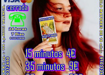VIDENTE NATURAL, TAROTISTAS EXPERTAS ,tarot económico, tarot fiable, tarot Videntes Recomendadas por sus aciertos 910312450 prefijo fuera de España (00 34) Tarifa 4 € 15 min/ 7 € 25min/ 9€ 35min. / 10€ 40min . 16€ 60 MINU. 20€ 90minATENCIÓN LAS 24 HORAS SOMOS UN TAROT CON TARIFA CERRADA LA LLAMADA SE CORTA SOLA / Tarot línea directa 806002109 – 0.49/0.79 cm. min. Fijo/ móvil , SOLO MAYORES DE 18 años Servicio prestado por K.A.V. ap. c 164 c.p.46002 VALENCIA.